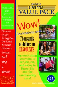 Check out the multitude of restaurants in the East Tennessee area included in the Lifestyle Pocket Saver/Lifestyle Value Pack Savings Book.